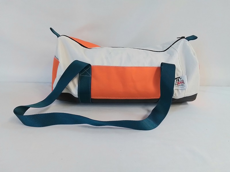 Petit sac skipper ou sac week-endDimensions : Longueur 52 cm, diamètre 27 cm.Matériaux recyclés : Corps en dacron et toile d'ombrage, doublé en dacron, fond en peau de zodiac2 anses larges de 4cmFermeture éclair équipée de tirettes à chaque extrémité.Poche frontale ouverte et une poche ouverte ...En savoir plus