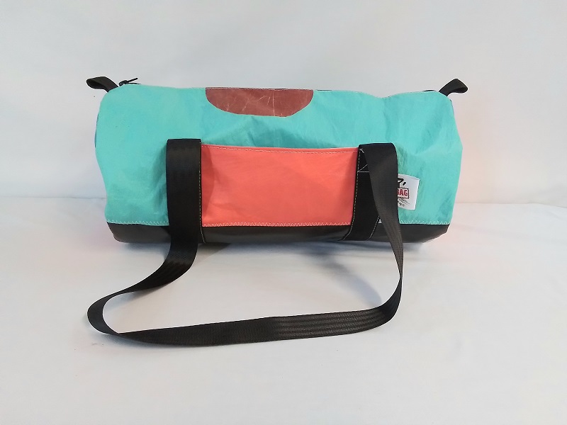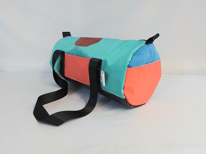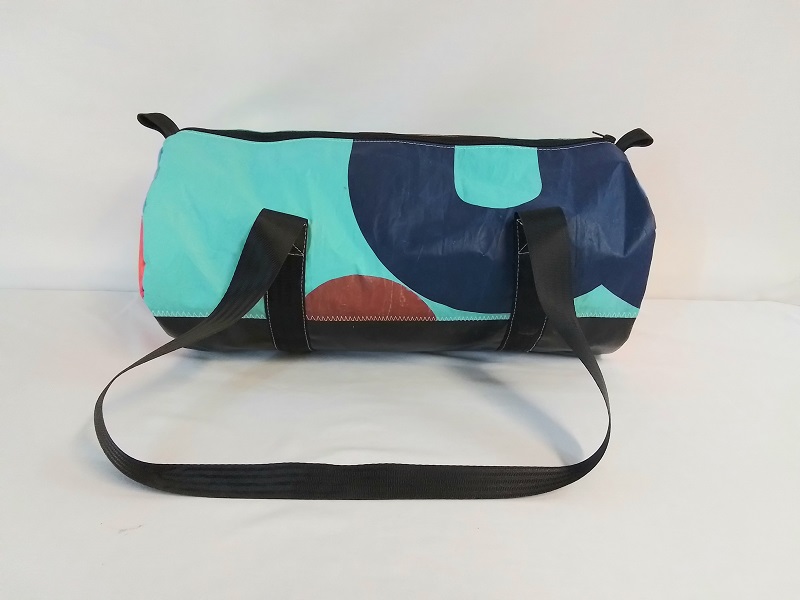 Petit sac skipper ou sac week-endDimensions : Longueur 52 cm, diamètre 27 cm.Matériaux recyclés : Corps en voile de bateau, doublé en voile laminée, fond en peau de zodiac2 anses larges de 4cmFermeture éclair équipée de tirettes à chaque extrémité.Poche frontale ouverte et une poche ouverte à c ...En savoir plus
