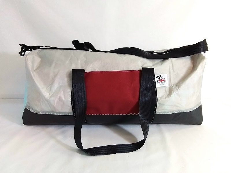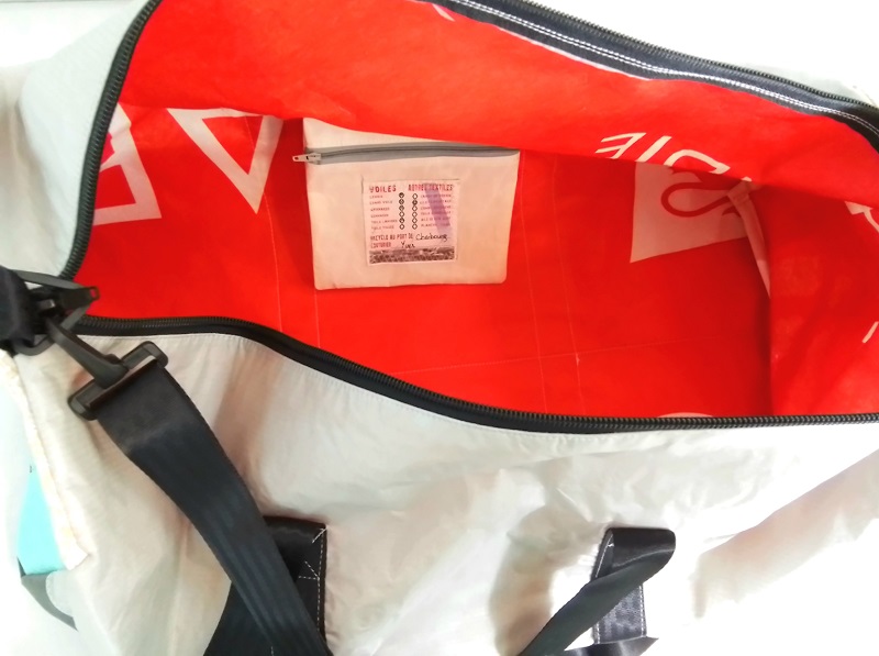 Matériaux recyclés : Corps en spi et en toile d’ombrage, doublure en feutrine, fond en peau de zodiac