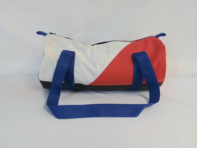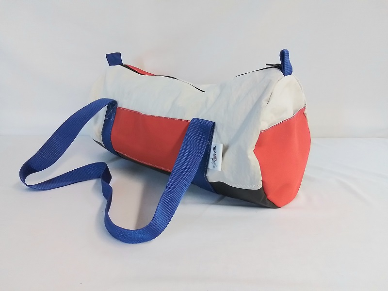Petit sac skipper ou sac week-endDimensions : Longueur 52 cm, diamètre 27 cm.Matériaux recyclés : Corps en dacron et toile d'ombrage, doublé en dacron, fond en peau de zodiac2 anses larges de 4cmFermeture éclair équipée de tirettes à chaque extrémité.Poche frontale ouverte et une poche ouverte ...En savoir plus